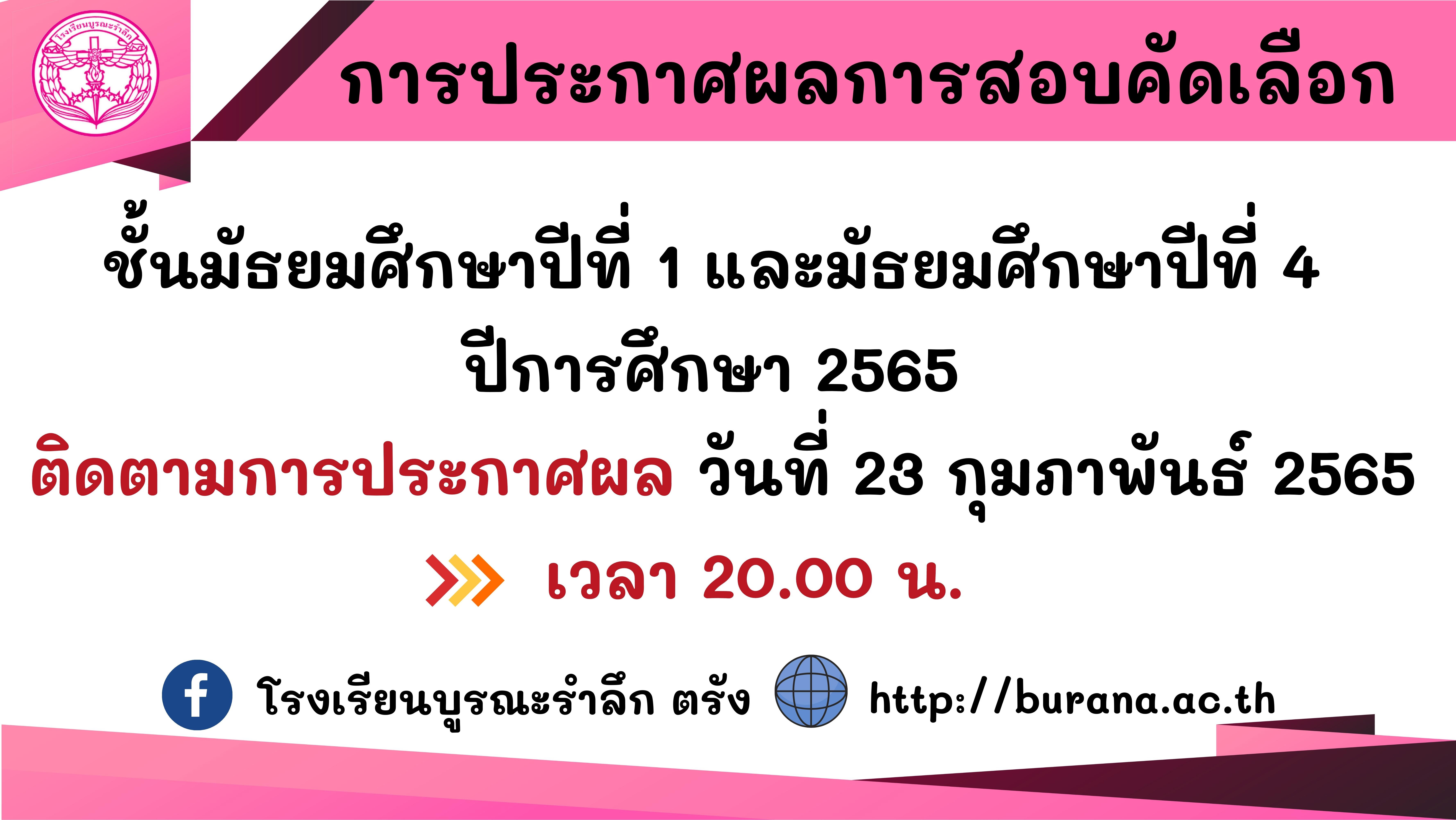 ประกาศผลการคัดเลือกนักเรียนแซมชั้น ปีการศึกษา 2569 (รอบ 2)