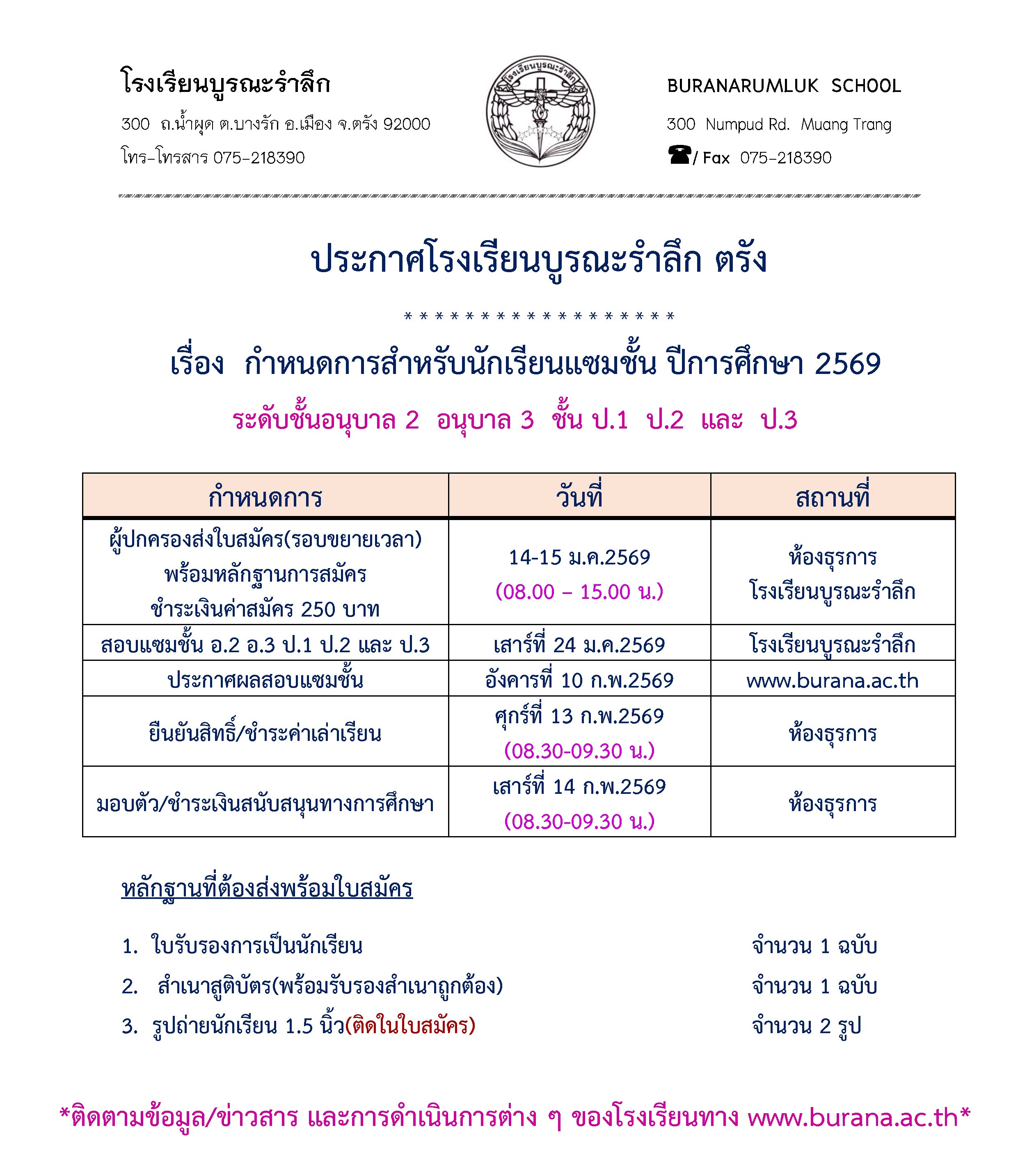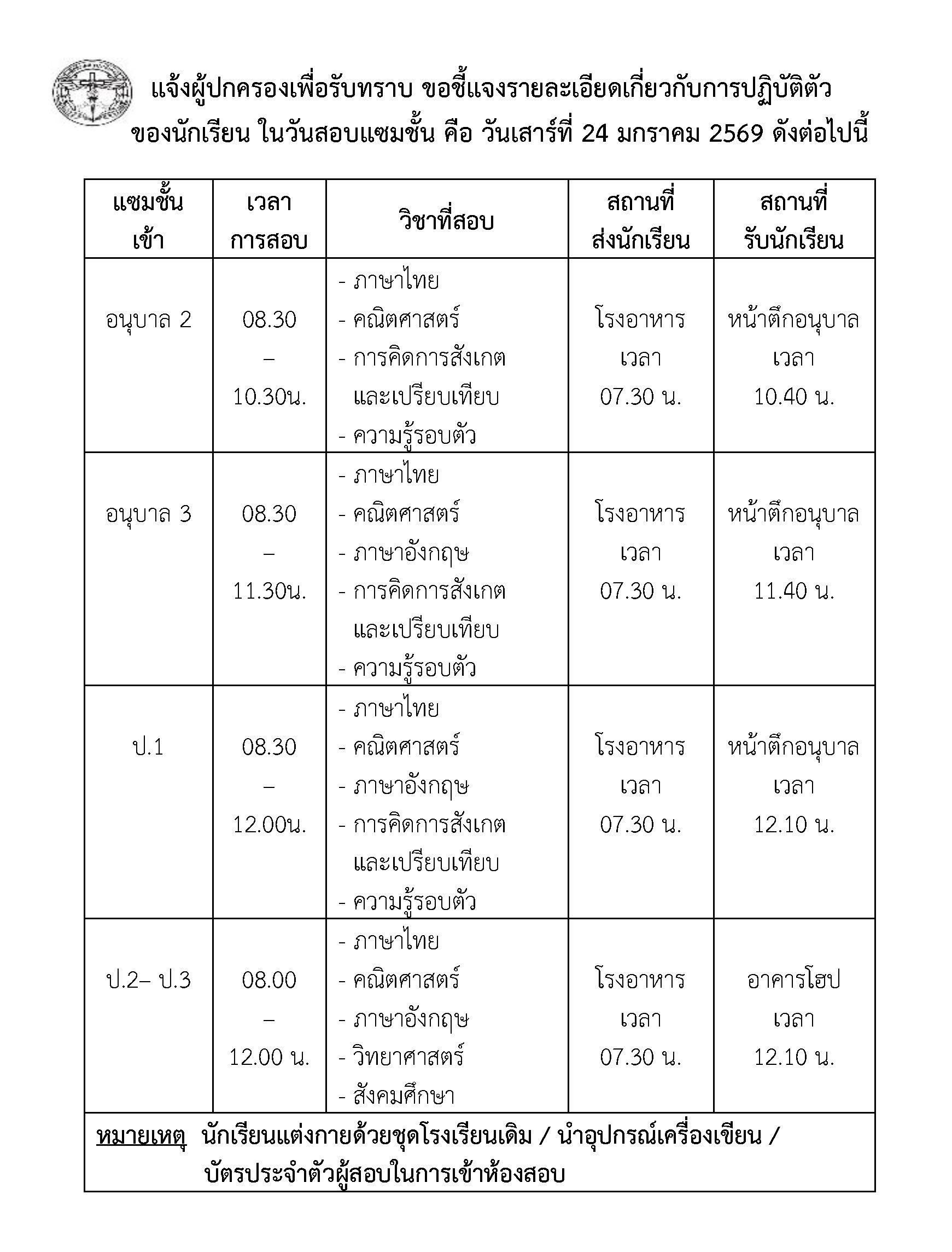 ขยายเวลารับสมัครนักเรียนแซมชั้น ระดับอนุบาล 2 ถึงประถมศึกษาปีที่ 3 ปีการศึกษา 2569