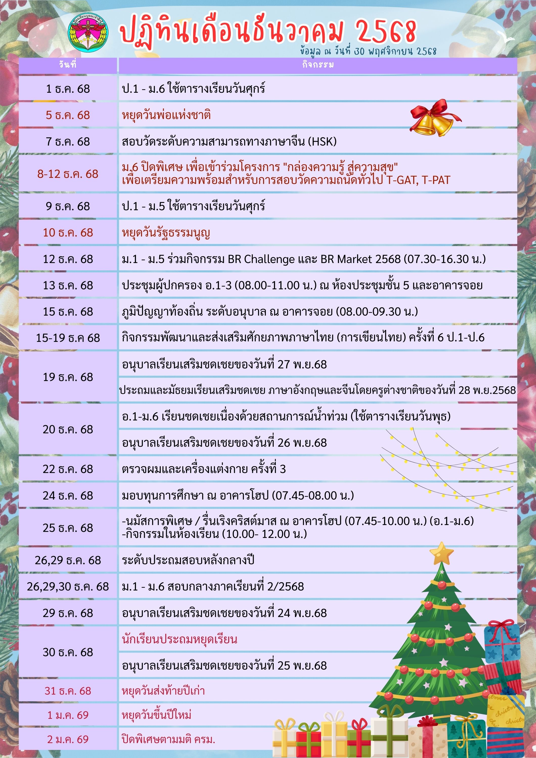 ข่าวสารกิจกรรม ปฏิทินโรงเรียนบูรณะรำลึก ปีการศึกษา 2568 พฤศจิกายน 30, 2025พฤศจิกายน 30, 2025 ผู้ดูแลเว็บ โรงเรียนบูรณะรำลึก