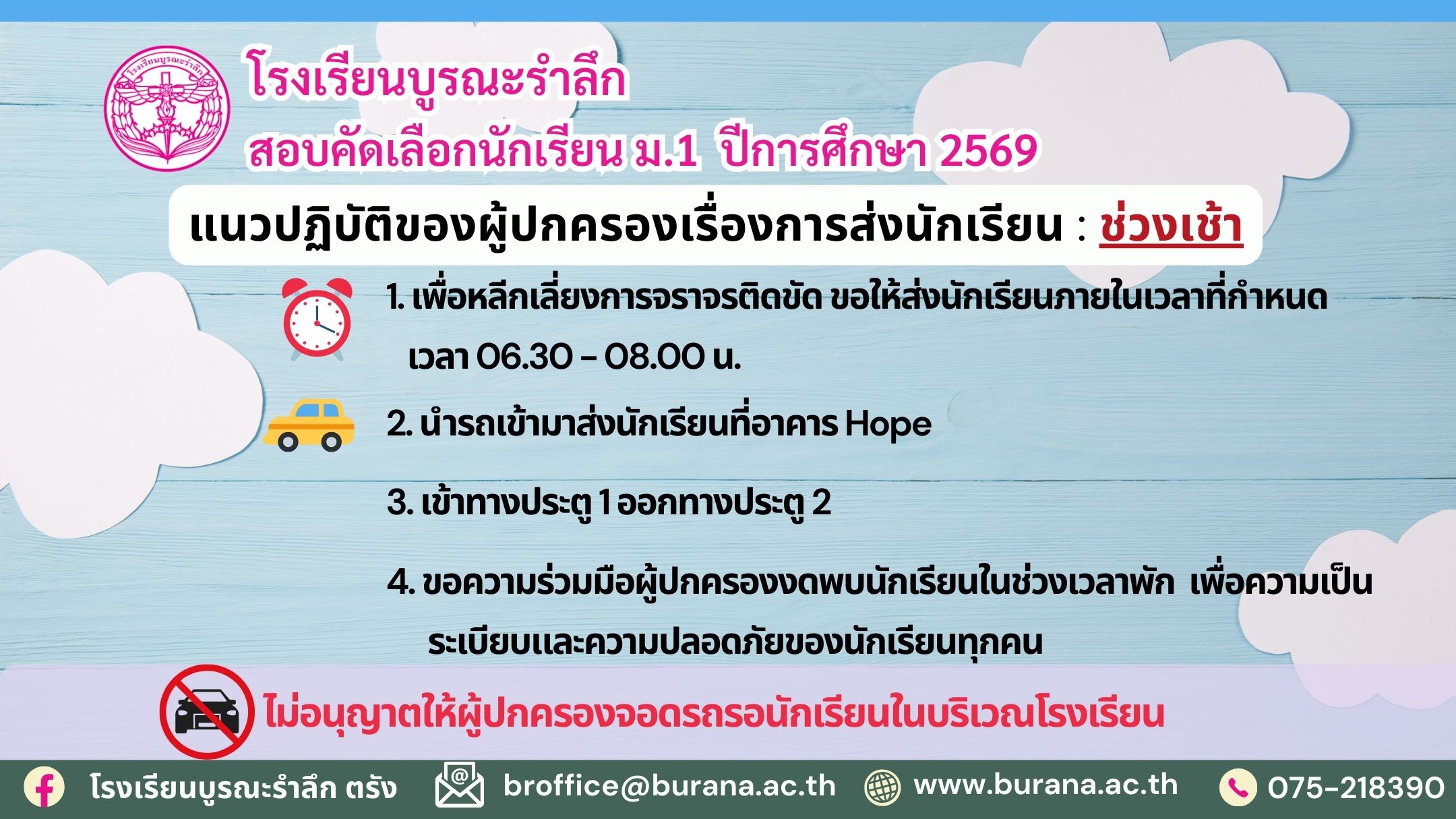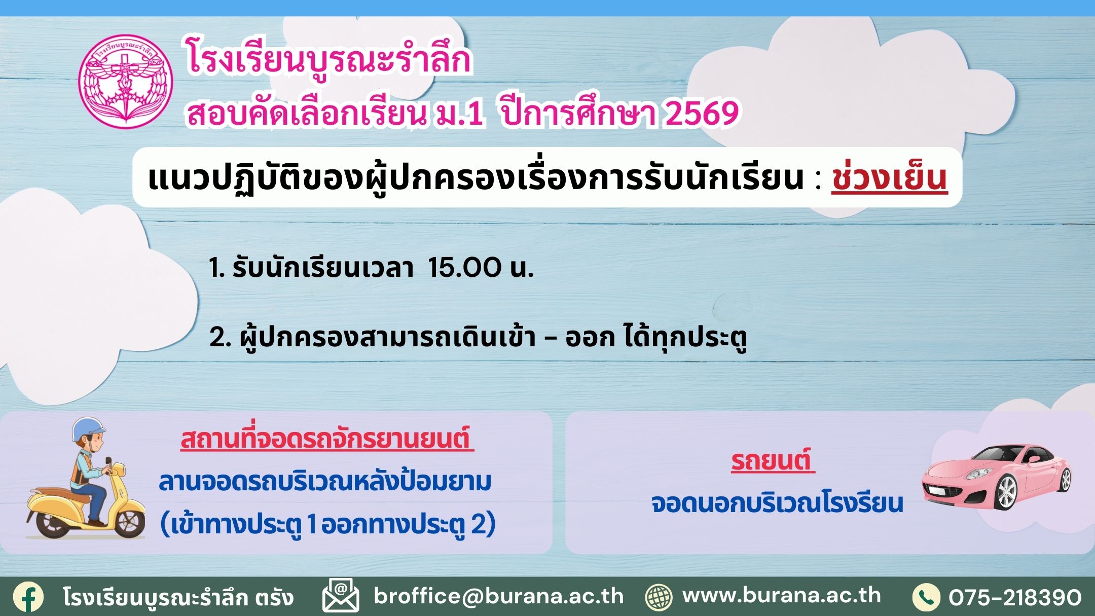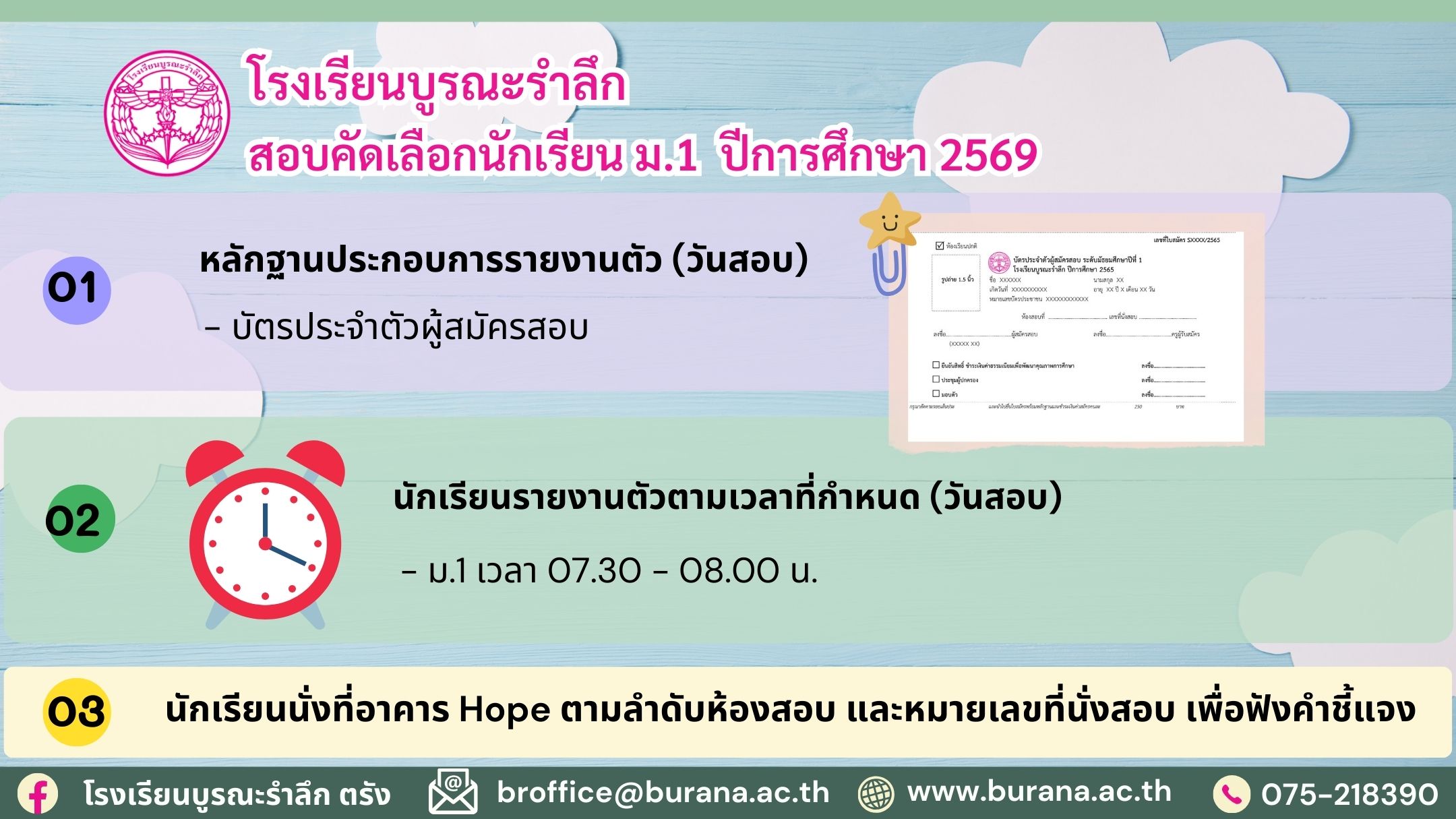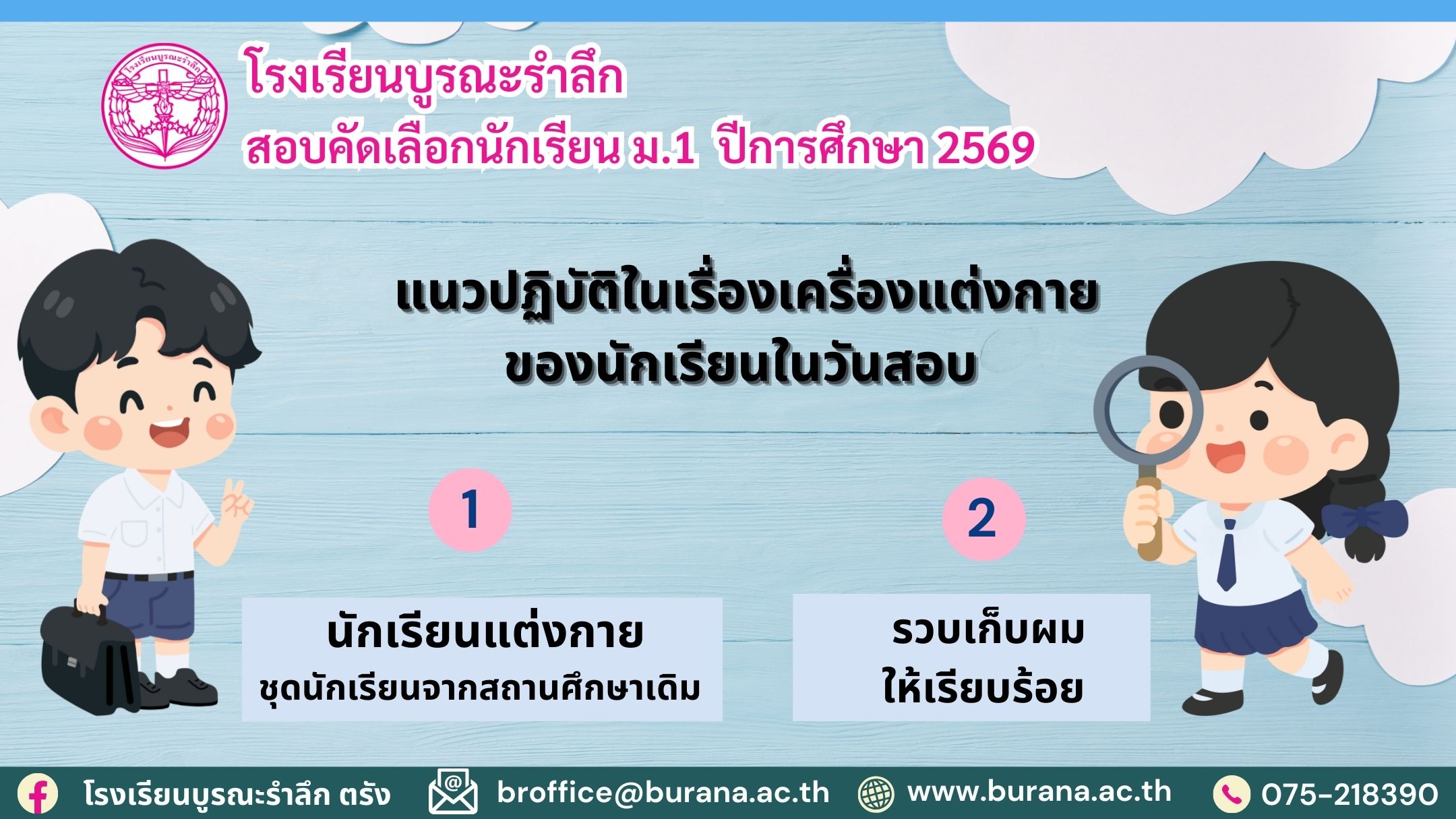 ข่าวสารประชาสัมพันธ์ ประกาศรายชื่อ ผู้มีสิทธิ์สอบคัดเลือก เพื่อเข้าศึกษาต่อระดับชั้น ม.1 2569 มกราคม 22, 2026มกราคม 22, 2026 ผู้ดูแลเว็บ โรงเรียนบูรณะรำลึก รายชื่อผู้มีสิทธิ์สอบคัดเลือกเพื่อเข้าศึกษาต่อระดับชั้น ม.1 ปีการศึกษา 2569 คลิกที่นี่