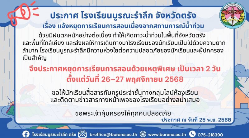 โรงเรียนบูรณะรำลึกแจ้งการปรับพื้นฐานปีการศึกษา 2564 ดังนี้