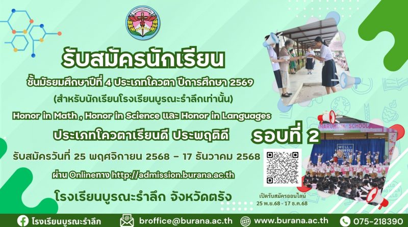 ตุลาคม 25, 2025ตุลาคม 30, 2025 ผู้ดูแลเว็บ โรงเรียนบูรณะรำลึก