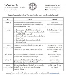 ปฏิทินโรงเรียนบูรณะรำลึก ปีการศึกษา 2568