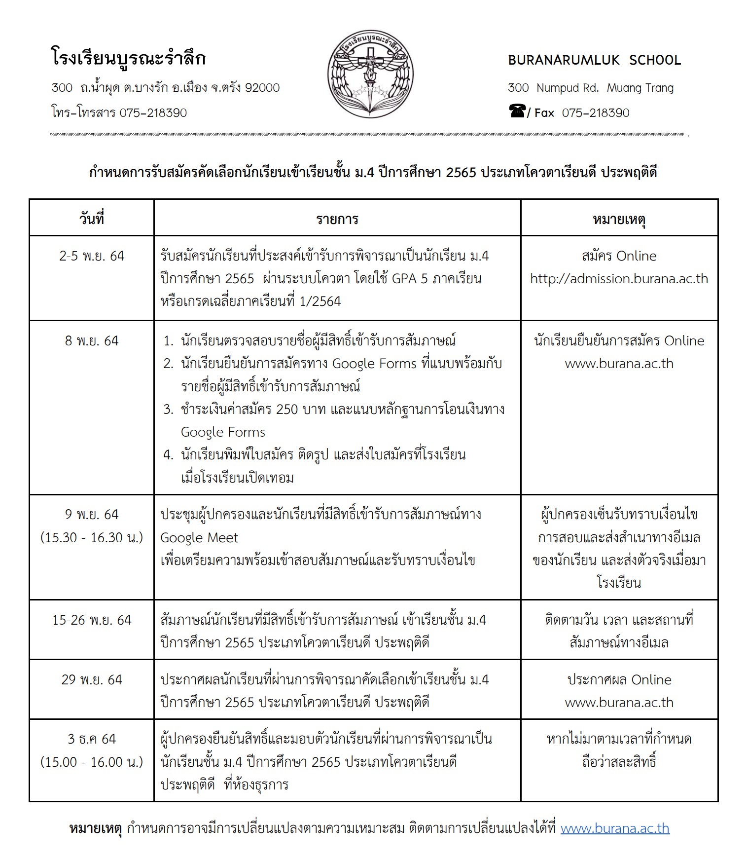 ติดต่อโรงเรียนบูรณะรำลึก